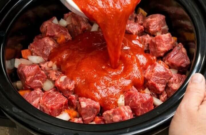 This old-fashioned Amish-style stew uses just four basic ingredients. You simply pour tomato soup over raw beef, add a couple of pantry staples, and let the slow cooker handle the rest. After a few hours, you’ll have a rich, savory stew with tender meat and a thick tomato-based gravy that tastes like it simmered all day.