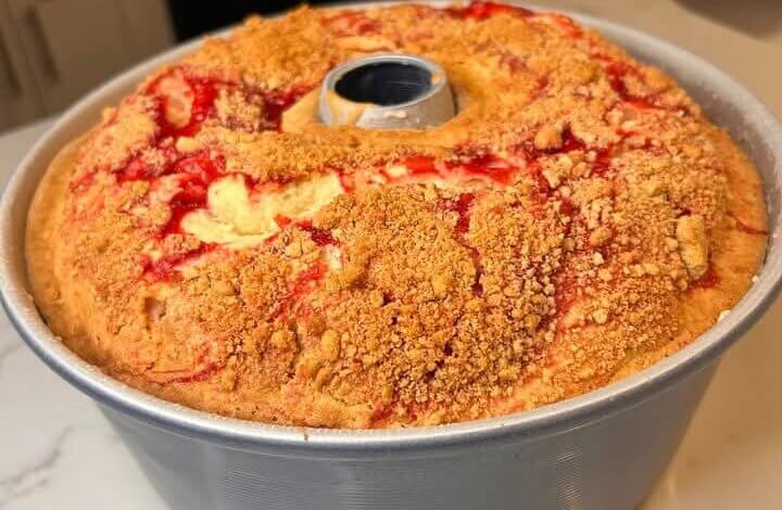 A rich, dense pound cake swirled with creamy cheesecake and packed with sweet strawberries—perfect for gatherings or special treats.