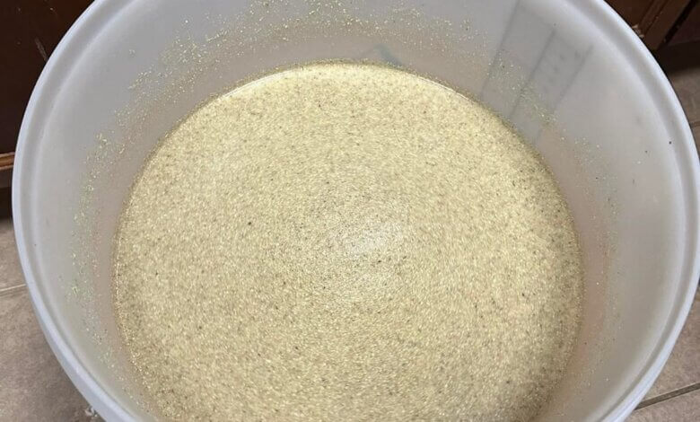 - Gradually stir in the cracked corn, ensuring there are no dry clumps.