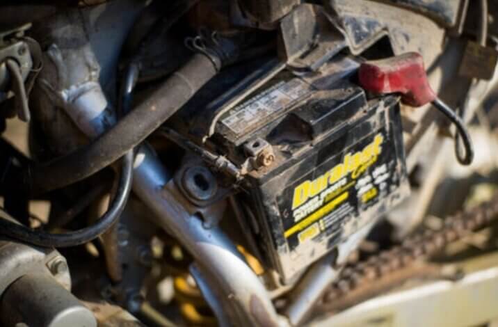 The battery should read around 12.5 – 12.8 volts when the bike is off.