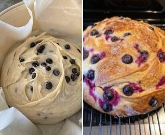 Enjoy your soft, tangy sourdough filled with bursts of blueberry sweetness and creamy richness.