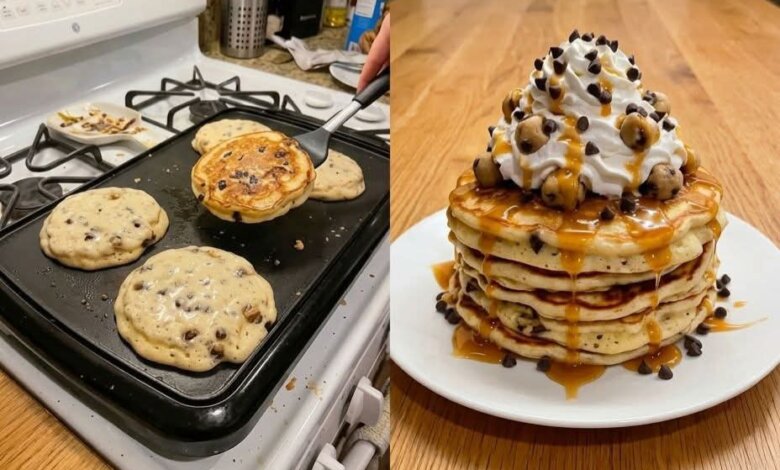 These pancakes are soft, fluffy, and loaded with sweet surprises inside! Creamy cheesecake bites and gooey cookie dough make every bite rich and delicious — like dessert for breakfast.