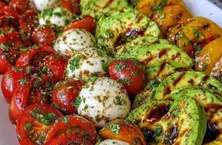 A fresh, colorful, no-cook platter that’s juicy, creamy, and finished with a sweet balsamic drizzle. Perfect for gatherings, brunch, or a light dinner.