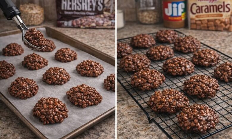 Crunchy, chewy, chocolatey, and caramel-packed cookies that require no baking and are seriously addictive!