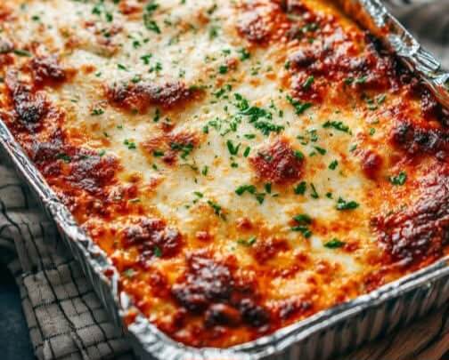 Think of it as lasagna’s laid-back cousin: all the cheesy, saucy goodness you love, but without the fuss. With just four simple ingredients and minimal prep, this recipe is perfect for weeknights, meal prepping, or sharing with friends and family. Bonus? You can divide it into two foil trays—bake one now and freeze the other for later.