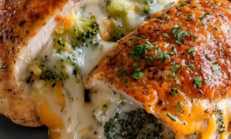 4. Assemble: Spread the steamed broccoli evenly over the chicken breasts. Then pour the cheese sauce mixture over the top, making sure all the chicken is covered.