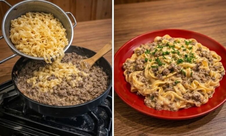 I swear this is one of those meals that makes you stop after the first bite and say, “Wait… how is this SO good with only a few ingredients?!” The beef turns rich and savory, the gravy becomes thick and creamy, and the egg noodles soak up all that flavor. It’s pure comfort food and ridiculously easy to make.