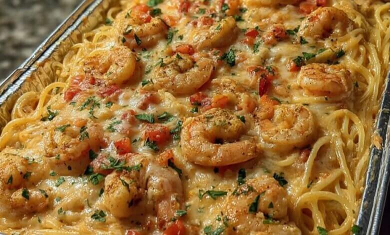CREAMY CAJUN SHRIMP PASTA BAKE
