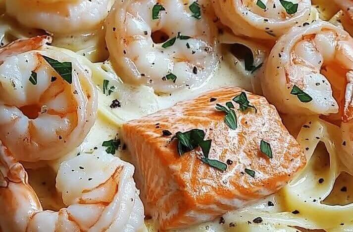 Creamy Salmon & Shrimp Alfredo
