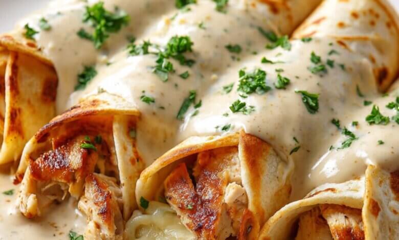 Tender, seasoned chicken wrapped in soft flour tortillas and baked under a rich, peppery cream sauce. Cozy, filling, and absolutely irresistible.