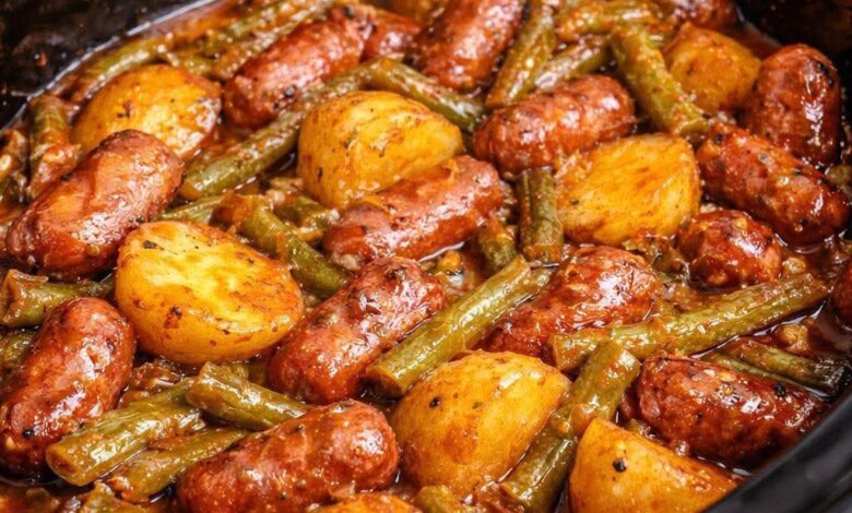 Crockpot Smokies with Beans and Potatoes