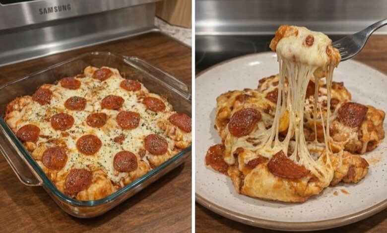 This Easy Pizza Biscuit Bake is a quick, family-friendly dinner that tastes like a cross between pizza and a cheesy casserole. Soft biscuit pieces bake in rich pizza sauce with melty mozzarella and pepperoni, creating a bubbly, golden dish that’s perfect for busy nights.