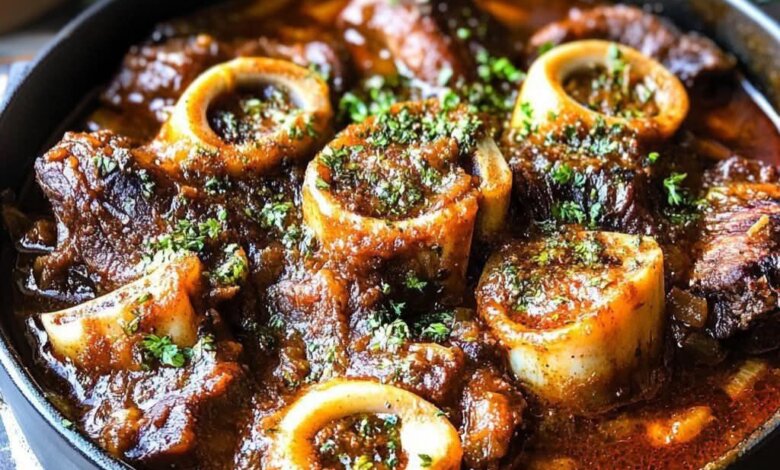 Few dishes feel as comforting and indulgent as slow-braised beef shanks bathed in a rich, garlicky gravy. The meat becomes irresistibly tender, soaking up deep savory flavors, while a side of crispy golden fries adds the perfect contrast in texture. This is a rustic, soul-warming meal that tastes like it’s been simmering with care all day.