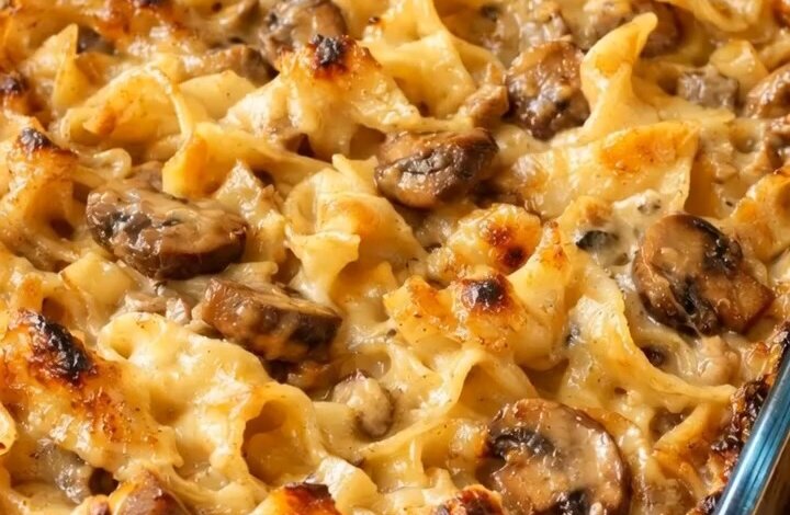 A rich, comforting pasta bake loaded with tender chicken, earthy mushrooms, and a silky cream sauce, all finished with a golden, bubbly cheese topping. Perfect for a cozy family dinner or an easy make-ahead meal.