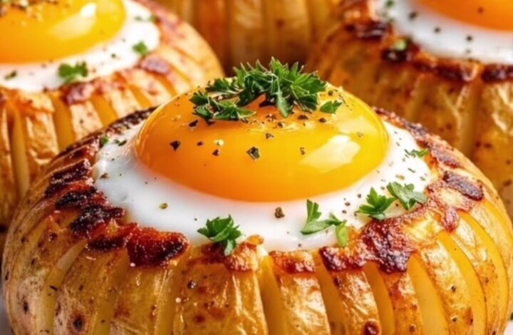 These crispy Hasselback potatoes filled with perfectly baked eggs are the ultimate comfort dish—simple, rustic, and packed with flavor. With golden edges, tender centers, and a rich egg nestled inside, this recipe is perfect for breakfast, brunch, or even a light dinner.