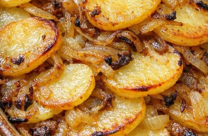 Serve these golden potatoes alongside roasted chicken, pork loin, or a perfectly seared steak. The buttery onions pair beautifully with meat juices. For a lighter contrast, add a crisp green salad with a tangy vinaigrette. They’re also a great addition to a brunch spread with scrambled eggs, a frittata, or fresh fruit. Leftovers can be reheated in a skillet for a crispy next-day treat—especially delicious topped with a fried egg.