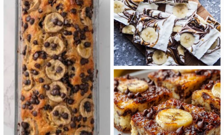 The top cracks golden under the knife, the interior is dense and moist with melted chocolate running through the crumb, the caramelized banana sits soft and sweet on top — breakfast that tastes like a decision you made for yourself, not for your macros.
