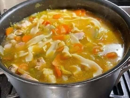 Pour in the chicken broth. Bring to a boil, then reduce heat and simmer for 10–15 minutes until veggies are tender. - Add noodles & chicken: