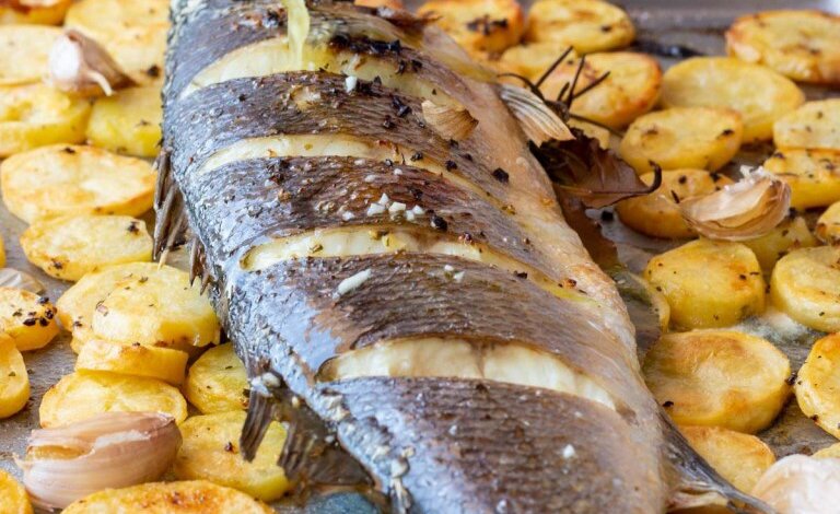 A simple, flavorful one-pan dish where tender whole fish is baked alongside perfectly seasoned potatoes, infused with garlic, lemon, and warm spices for a fresh and comforting meal.