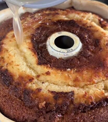 Pour glaze over warm cake and let soak