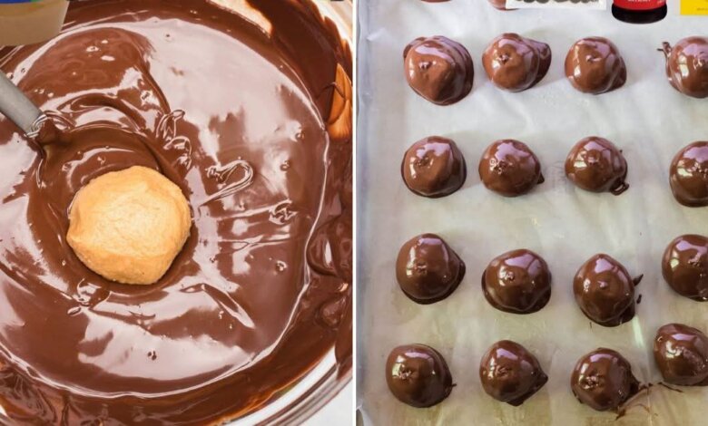 - Refrigerate the chocolate-covered peanut butter balls for 20–25 minutes until the chocolate is fully set.