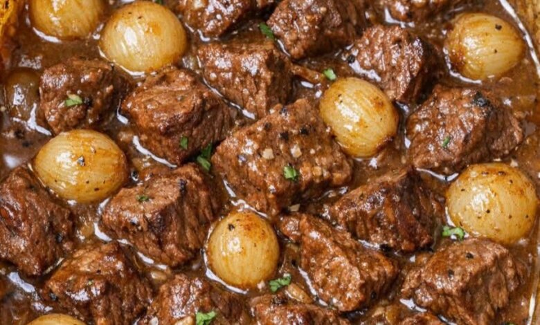 This timeless casserole is the kind of dish that never goes out of style—simple, hearty, and full of rich, slow-cooked flavor. Tender chunks of beef bake gently with sweet pearl onions in a savory, comforting gravy, all made with just a handful of pantry staples. It’s the perfect no-fuss meal for family gatherings, cozy weekends, or whenever you’re craving something warm and nostalgic.