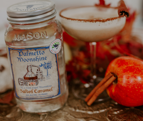 Chill martini glass. Combine all ingredients in a shaker with ice. Shake vigorously until it froths. Pour into chilled martini glass. Dust a light sprinkle of your best sea salt on top. Garnish with an apple slice drizzled with caramel sauce.