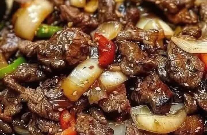 Tender beef strips, caramelized onions, and a rich, glossy pepper sauce — this dish tastes just like takeout but even better homemade!
