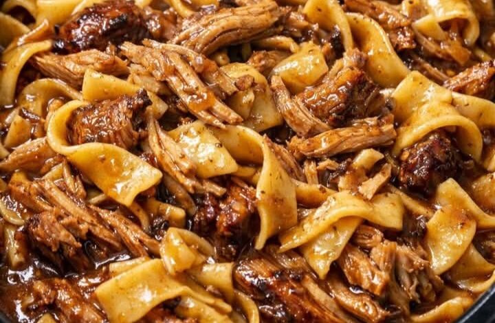 Slow Cooker Amish Pork Noodles (4 Ingredients)