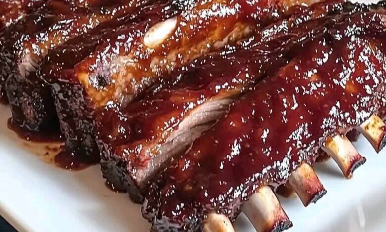 - Pour the barbecue sauce mixture evenly over the ribs, coating them well.