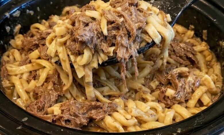 This cozy, hearty meal is pure comfort food — tender shredded chuck roast in rich gravy with soft egg noodles. Perfect for a filling family dinner.