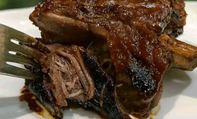 - Slice between the bones and serve hot with extra BBQ sauce on the side.