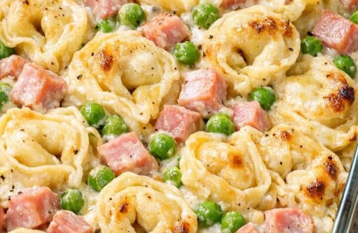 Spring Comfort in a Dish: Creamy 4-Ingredient Ham & Pea Tortellini Bake