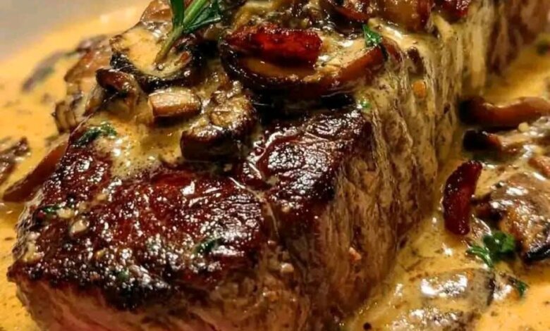 Rich, savory steak topped with a silky garlic cream sauce that has deep, smoky flavor.