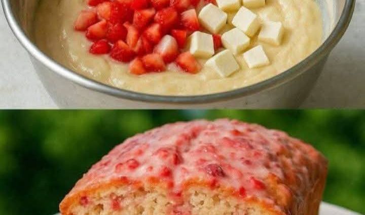 Gently fold in the chopped strawberries (and nuts or coconut if using) until evenly distributed. - Pour into the loaf pan: