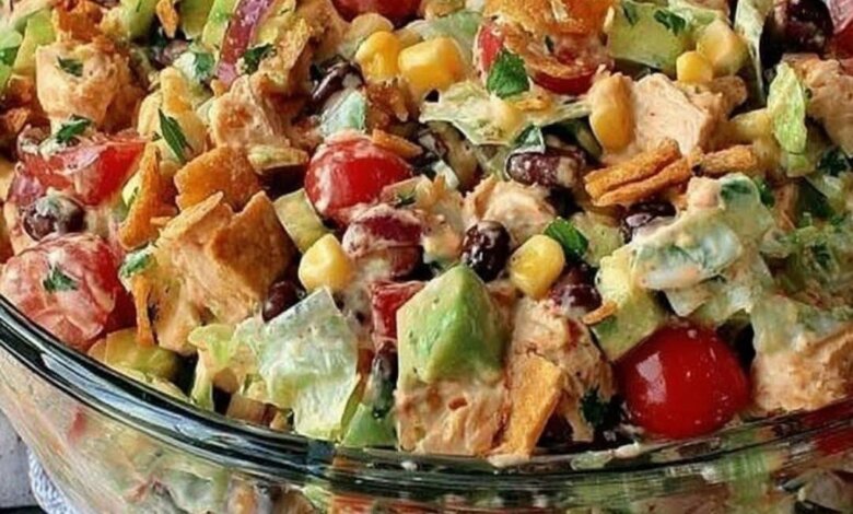 A colorful, flavor-packed salad that brings together juicy chicken, crisp veggies, and a creamy ranch-taco dressing with just the right amount of heat. It’s the perfect balance of freshness and bold Tex-Mex flair—great as a light main course or a vibrant side dish! ️