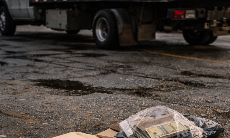 Karen stood on the curb, calmly stuffing a thick envelope of cash into her purse.