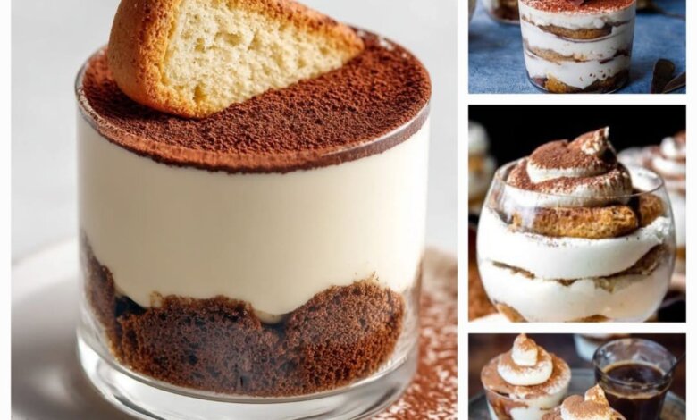Pipe or spoon a thick layer of mascarpone cream directly over the soaked ladyfingers — fill to halfway up the glass.