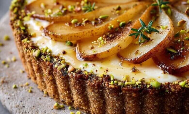 Warm Pear & Ricotta Tart with Pistachio Crust